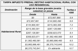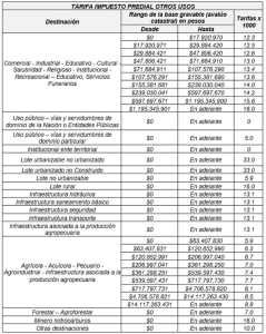 - Tarifas del impuesto predial: