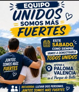 La derecha colombiana por intermedio de la candidatura de Paloma Valencia se tomó el parque principal bellanita y aunque no lo llenó, si contó con el apoyo de varios partidos políticos, mientras otros dirigentes o líderes mostraron sus rostros para figurar con sus equipos políticos.